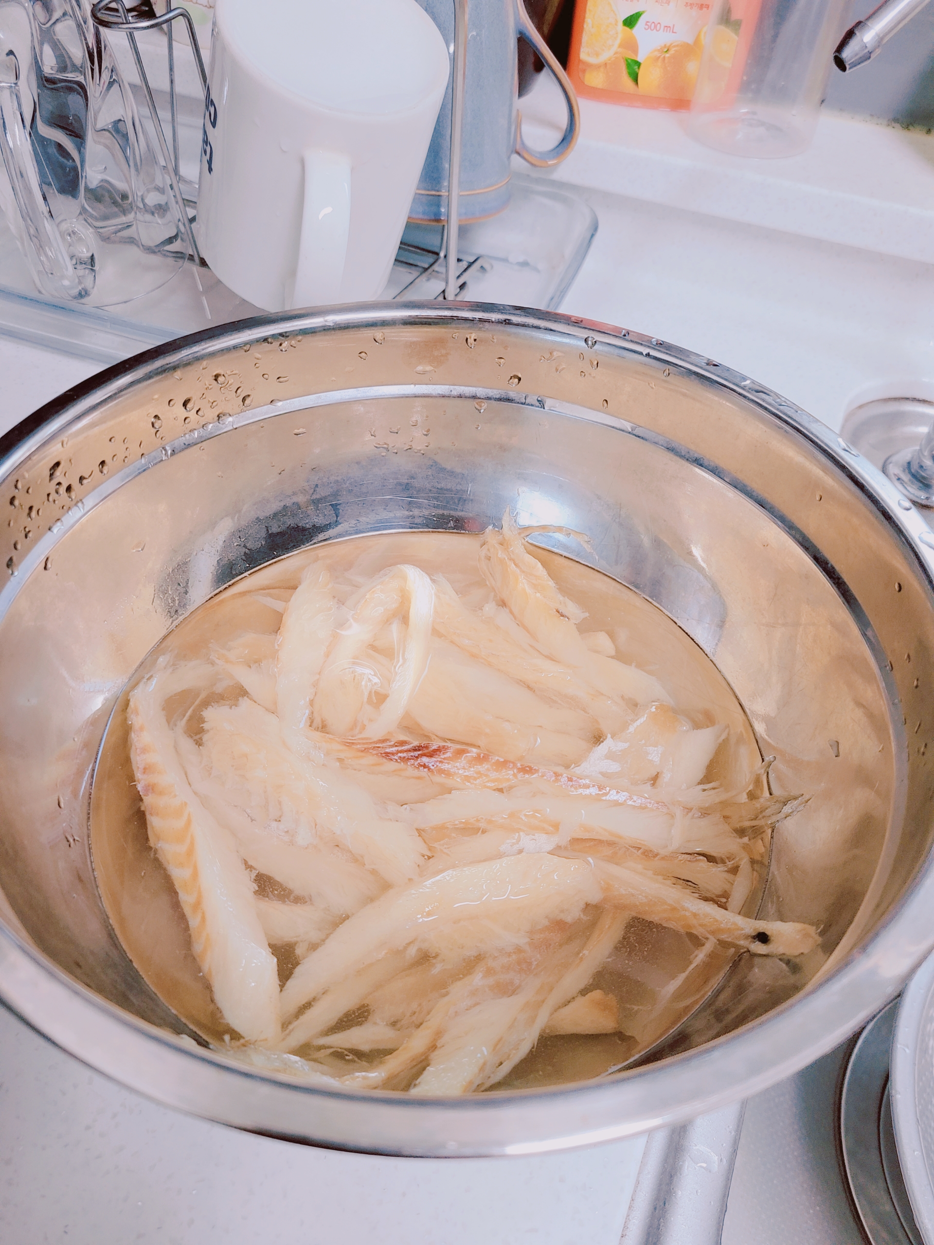 1. 가시를 바른 북어를 물에 불려 2~3번 헹궈주세요